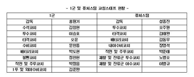 키움 히어로즈가 2025시즌 1군과 퓨처스(2군)팀 코치진 구성을 완료했다고 14일 발표했다.