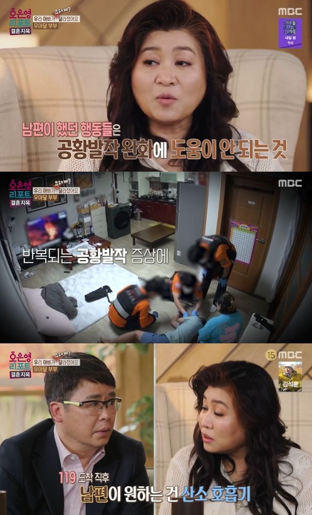 공황장애를 겪게 된 이유에 대해 남편은 "부모님이 연이어 돌아가신 후 숨을 못 쉬겠더라. 정신이 반이 나가더라"고 입을 열었다. 주변 지인의 권유로 정신과를 찾은 남편은 공황장애 진단을 받았다고.