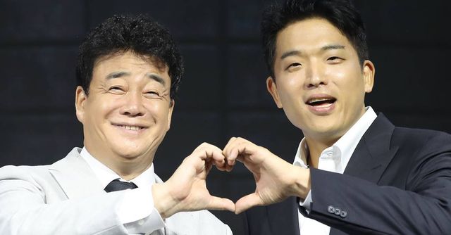 요리연구가 백종원과 안성재(오른쪽)가 지난달 11일 서울 JW 메리어트 동대문 스퀘어 서울에서 열린 넷플릭스 예능 '흑백요리사: 요리 계급 전쟁' 제작발표회에서 포즈를 취하고 있다 / 뉴스1