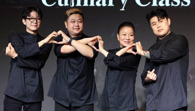 요리사 최현석(왼쪽부터), 정지선, 장호준, 에드워드 리가 지난 7일 오전 서울 마포구 호텔 나루 서울 엠갤러리에서 열린 넷플릭스 예능 '흑백요리사: 요리 계급 전쟁' 기자간담회에서 포즈를 취하고 있다 / 뉴스1