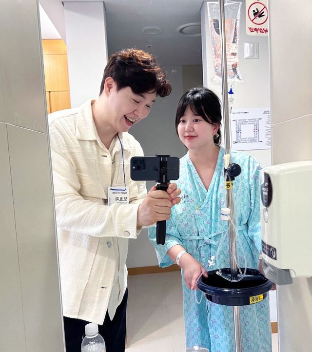 공개된 사진 속 김다예는 병원복을 입은 채 나면 박수홍과 거울샷을 찍고 있는 모습. 또한 박수홍이 미소지으며 행복해하는 모습도 담겼다. 마지막 사진에는 딸 전복이의 사진이 담겨 눈길을 끌었다.