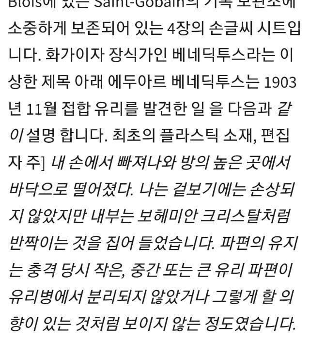 대충 고양이 덕분에 안전유리를 발명했다는 내용