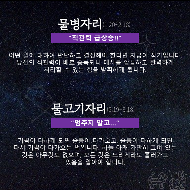 애정운도 그리 좋은 편은 아닙니다. 커플인 분이라면 주변에서 두 사람을 이간질시키는 말을 듣게 될 수 있습니다. 싱글인 분 또한 미팅이나 소개팅에서 자존심 상하는 말을 듣게 될 수 있으니 정신을 바짝 차리세요.