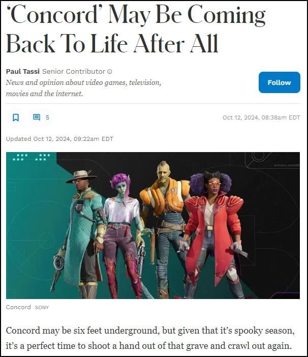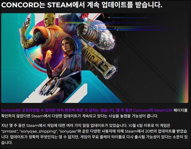 서비스가 이미 끝난 게임인 콩코드가 계속 업데이트가 되고 있었고