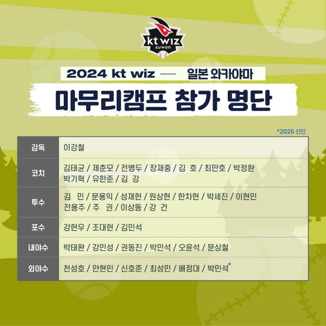 한편, 2024 시즌 1군에서 활약했던 주축 선수들과 퓨처스 잔류군은 각각 수원 KT 위즈 파크와 익산에서 회복 훈련에 집중할 계획이다.