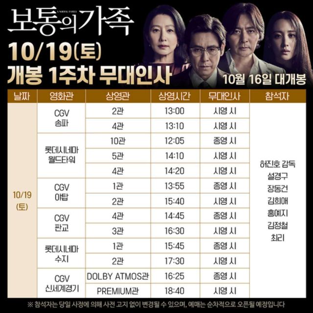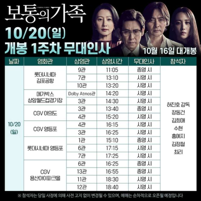 '보통의 가족' 10월 19일(토) 무대인사 일정표. / 하이브미디어코프 제공