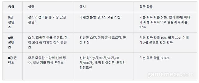 ▲ 성소 콘텐츠 확률 정보 (정보출처: 리그 오브 레전드 공식 홈페이지)