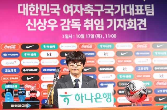 대한축구협회는 17일 오전 11시 신문로 축구회관에서 신상우 감독 취임 기자회견을 진행했다. 앞서 지난 10일 협회는 신 감독을 여자 대표팀 새 사령탑으로 임명했다고 밝혔다. 계약 기간은 2028 로스앤젤레스 올림픽까지고 2027 국제축구연맹(FIFA) 여자 월드컵을 통해 중간 평가를 받는다.