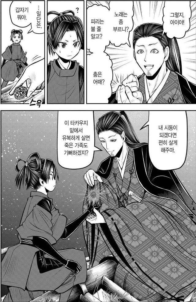 옛 주군의 자식한테 자신의 시동이 되라고 권유하기.
