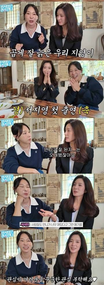 서지영은 "잘 되니까 너무 좋죠. 언니가 잘 된지는 오래됐지 않냐. 원래 웃긴 사람인 건 잘 알고 있었는데"라며 "주변 사람들도 재밌다고 해줄 거 아니냐. '오 그렇구나' 하면서 기분 좋고. 쭉 길게 언니가 방송하는 모습 꼭 보고 싶다"라고 말했다.