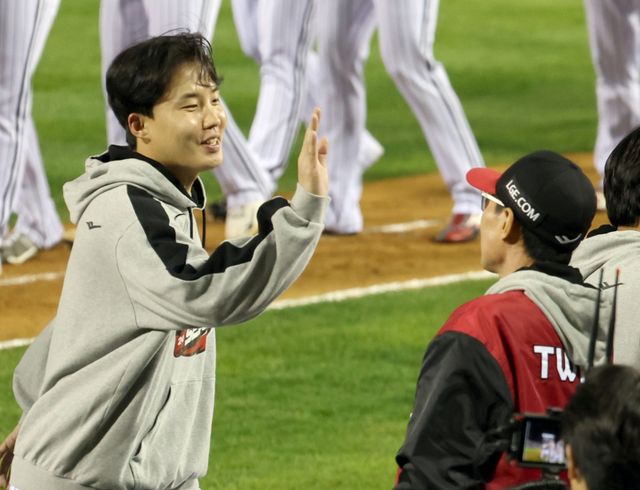 선발 투수 임찬규가 5와 3분의 1이닝 3피안타 무실점으로 승리 투수가 됐다. 교체 당시 임찬규의 투구 수는 84개(스트라이크 51개)였다. 지난 6일 KT 위즈와의 준PO 2차전 92개, 11일 준PO 5차전 89개의 공을 던진 임찬규는 닷새 휴식 후 마운드에 올랐다. 포스트시즌(PS)의 부담감과 압박을 고려해도 무실점 투구 중이었고, 한계 투구 수도 조금 남은 상태였다.