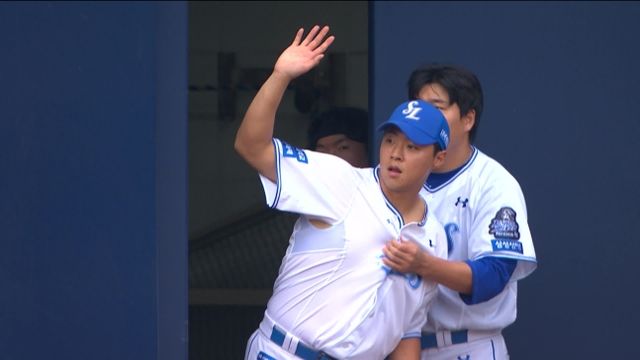 강렬한 교체 순간이었다. 멱살 잡혀 나온 투수는 손을 들어 자신의 등판 차례인 걸 확인했다. 이후 옷매무새를 가다듬으며 마운드로 달려나갔다. 삼성 라이온즈 투수 김윤수는 그렇게 강렬한 가을야구 복귀전을 치렀다.