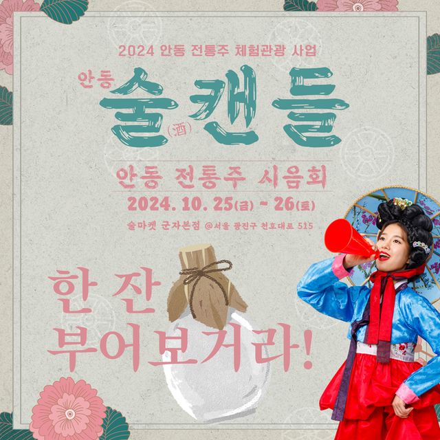 안동시와 사단법인 안동시관광협의회가 주최하고 전통주소믈리에가 진행하는 ‘안동술캔들’이 오는 10월 25일과 26일 서울 군자역 술마켓 본점에서 열린다.