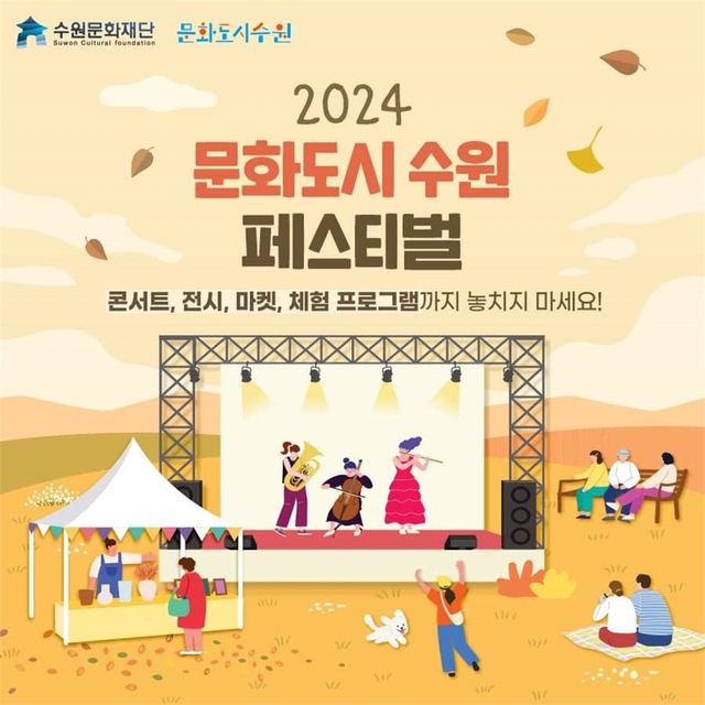 아울러 "저녁 7시엔 ‘융합, 우리 함께 수원’을 주제로 콘서트도 열린다. ‘맨발의 디바’ 이은미님, ‘개여울’의 정미조님, 크로스오버 국가대표 라포엠, 그리고 자랑스러운 수원시립합창단과 뮤지컬 팝스가 가을빛 감성을 선물할 것"이라면 참여를 당부했다.