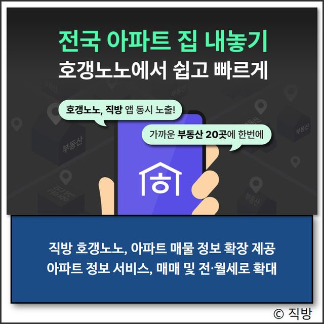 부동산 플랫폼 직방이 운영하는 '호갱노노'가 전국 아파트를 대상으로 한 매물 정보 제공 서비스를 시작한다.