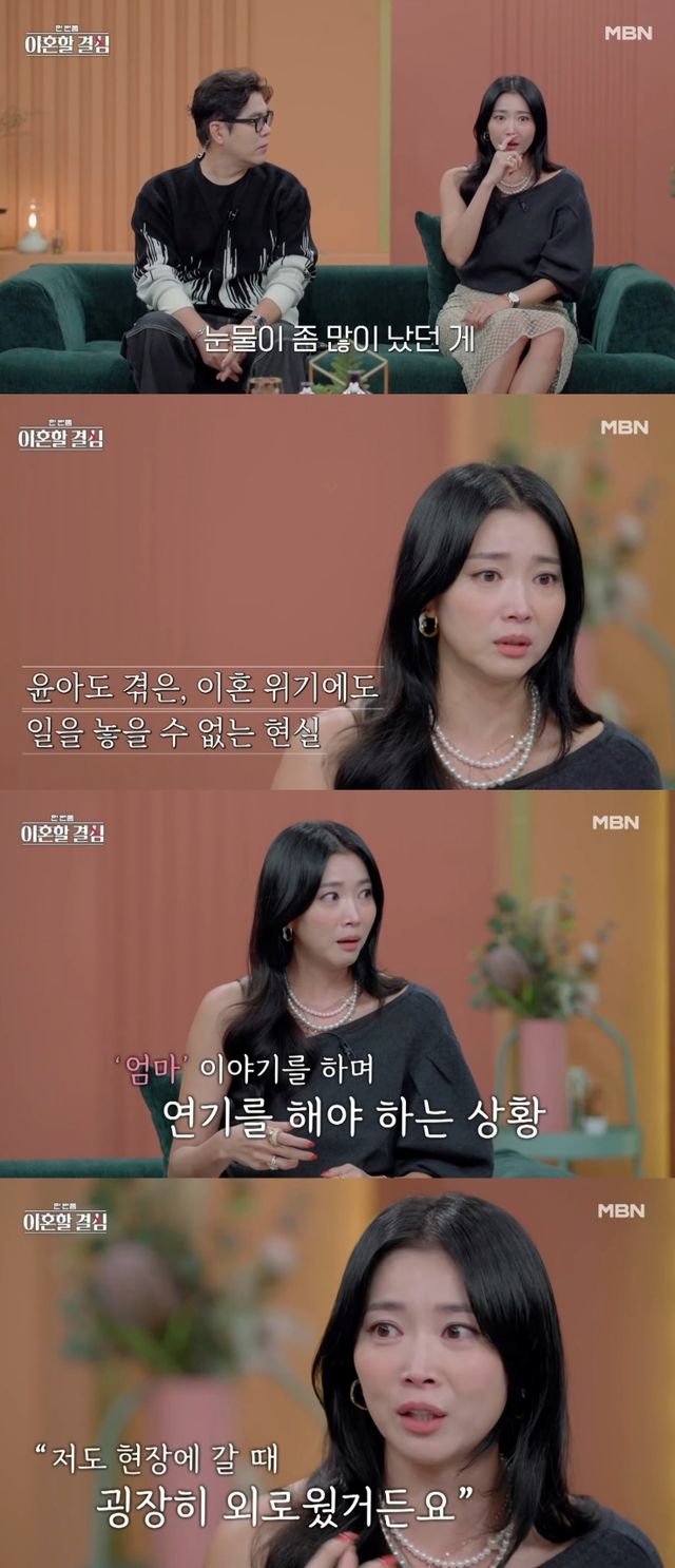 20일 방송되는 MBN '한 번쯤 이혼할 결심'(이하 '한이결') 측이 업로드한 선공개 영상 속 오윤아가 눈물을 흘리며 힘들었던 과거를 털어놨다.