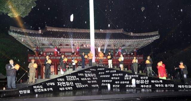 '신화의 섬 제주, 그 유산의 빛, 신들이 사라졌다'의 주제로 열린 이날 선포식은 '유네스코 자연과학분야 3관왕'을 비롯해 유네스코에 등재된 제주해녀문화유산 등 제주의 풍부한 자연·문화·무형유산의 가치를 재조명하는 서막을 열었다.