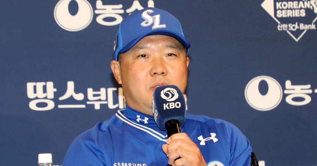 박진만 삼성라이온즈 감독이 지난 20일 광주 라마다플라자 바이 윈덤 충장 호텔 라벤더홀에서 열린 신한 SOL뱅크 KBO 한국시리즈 미디어데이에서 출사표를 던지고 있다. / 뉴스1