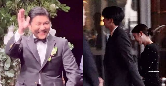 이승기는 단정한 정장 차림으로 차에서 내렸고, 곧이어 검은색의 진주 벨벳 원피스를 입은 이다인이 모습을 드러냈다. 이승기는 이다인의 허리를 감싸 에스코트한 뒤 손을 꼭 잡고 결혼식장 안으로 들어갔다.
