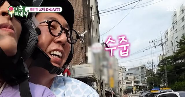 짝사랑 상대의 오토바이에 탄 개그맨 김영철의 모습. / 유튜브, SBS Entertainment