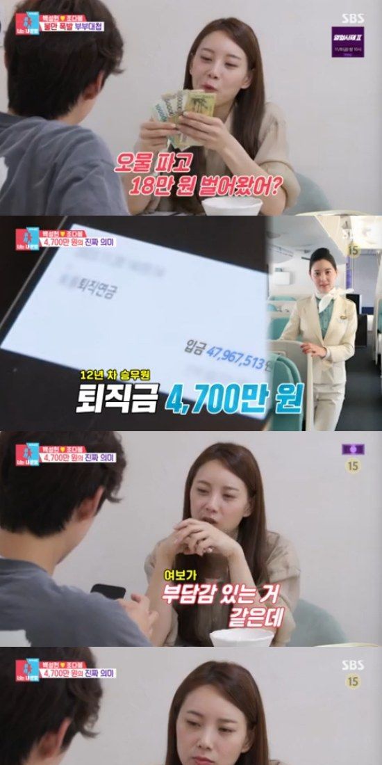 그러면서 백성현은 일당으로 받은 18만원을 조다봄에게 용돈이라면서 건넸다. 그리고 조다봄은 백성현에게 휴대전화를 내밀었다. 거기에는 4,700만원이 찍혀 있었다. 조다봄이 승무원으로 12년 일한 퇴직금으로 받은 돈이었다.