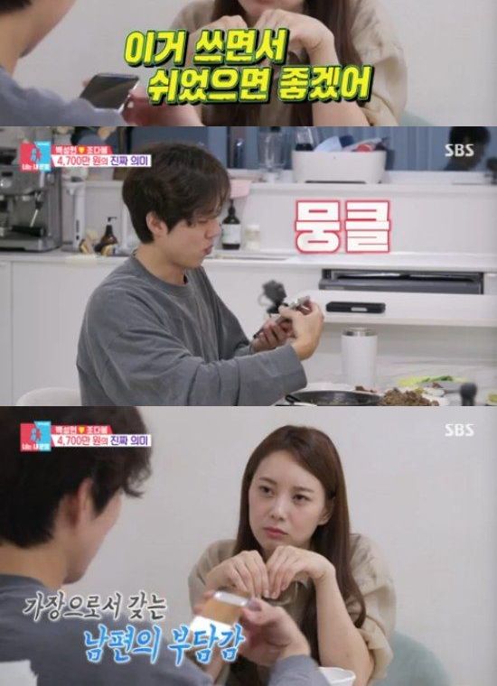 (엑스포츠뉴스 오수정 기자) '동상이몽2'에서 백성현의 아내가 퇴직금을 남편에게 선물했다.