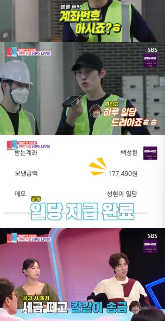 그러면서 백성현은 "계좌번호 아시죠? 휴일에는 더 주셔야한다"고 말했고, 실제로 일당 18만원에서 세금을 뗀 금액을 받아 눈길을 끌었다.
