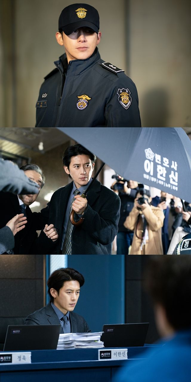 이어진 스틸에서는 변호사로 변신한 이한신의 모습이 담겨 있다. ‘변호사 이한신’이라는 문구가 적힌 우산을 들고 기자들 앞에서 누군가를 보호하는 장면이 궁금증을 유발한다. 교도관 시절보다 능청스럽고, 여유로워진 그의 표정은 변호사 이한신의 달라진 심경을 대변한다.