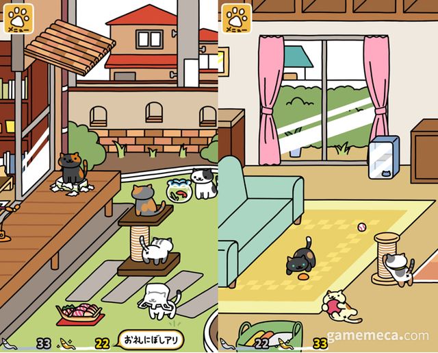 먹이와 장난감을 늘어두고, 집에 놀러온 고양이들을 지켜보는 모바일게임 ‘네코아츠메’가 후속작으로 돌아왔다. 기존 게임성은 지키되, 다른 유저 집에 놀러갈 수 있는 외출 등 새로운 요소가 더해졌다.