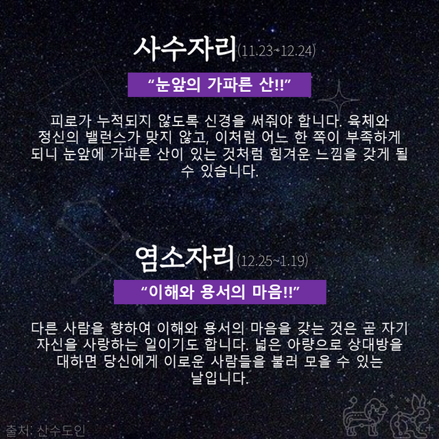 Δ 사수자리 : 눈앞의 가파른 산!!