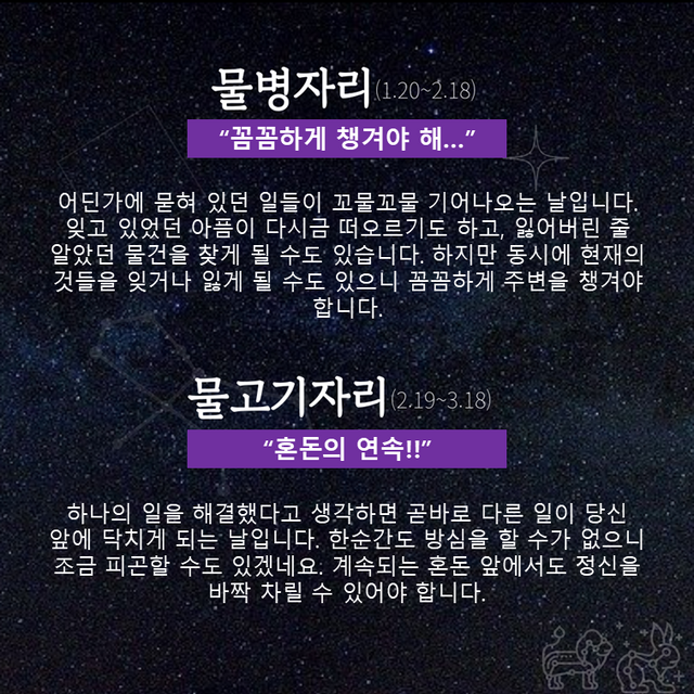Δ 물병자리 : 꼼꼼하게 챙겨야 해…