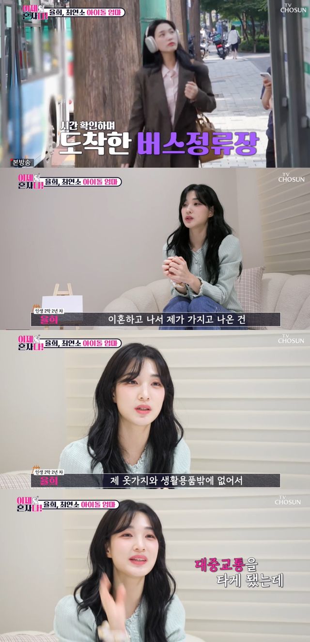 인생 2막을 새롭게 시작한 율희는 대중교통을 이용하며 스케줄을 소화하는 모습을 보였다. 원래 주 이동 수단이 뭐냐고 물어보자 율희는 "원래 차였다. 이혼하고 나서 제가 가지고 나온 건 제 옷가지와 생활용품밖에 없었다"며 대중교통을 타게 된 이유를 밝혔다.