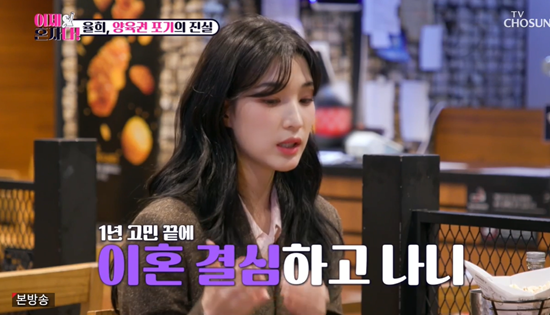 이어 이혼이라는 걸 입 밖으로 꺼낼 때 큰 용기가 필요했을 것 같다는 말에 율희는 "제가 (이혼 이야기를) 꺼내지 않았다. 그래서 그걸 잘 모르겠다"고 말해 이혼을 받아들이는 입장이었음을 드러냈다.