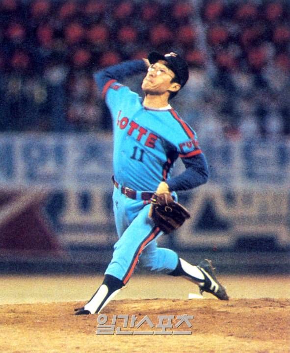 1984년 한국시리즈에 등판한 롯데 최동원의 투구 모습. 최동원은 그해 한국시리즈에서 전무후무한 4승 신화를 달성했다. 그 배경엔 '가을비'가 있었다. IS 포토