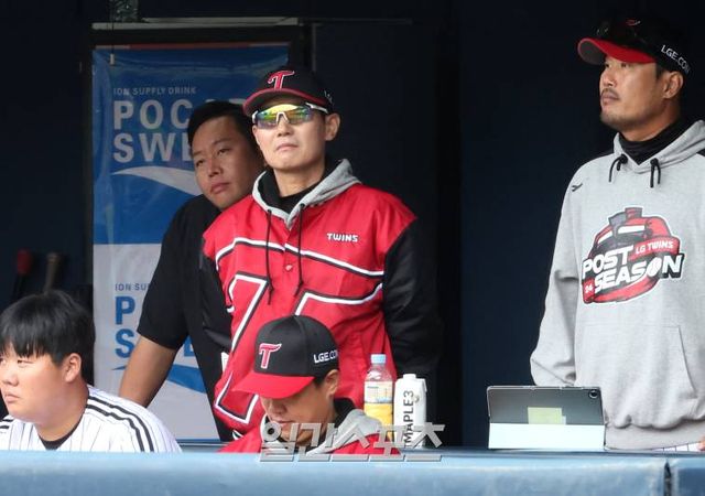 2024 프로야구 KBO 포스트시즌 LG 트윈스와 삼성 라이온즈의 플레이오프(PO) 4차전 경기가 19일 오후 서울 잠실야구장에서 열렸다. 2회말 1사 1루 문보경 타석 때 오지환이 2루 도루를 시도했지만 실패하자 염경엽 감독이 굳은 표정을 짓고 있다. 잠실=김민규 기자 mgkim1@edaily.co.kr /2024.10.19/