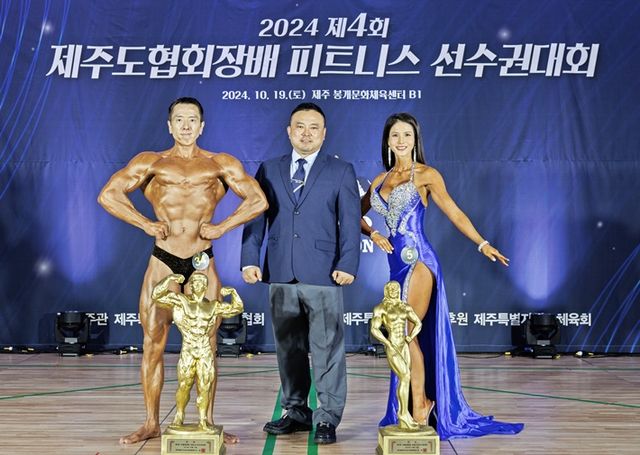 제4회 제주자치도보디빌딩협회장배 피트니스선수권 대회 그랑프리를 차지한 박인성(왼쪽)과 김민서(오른쪽).