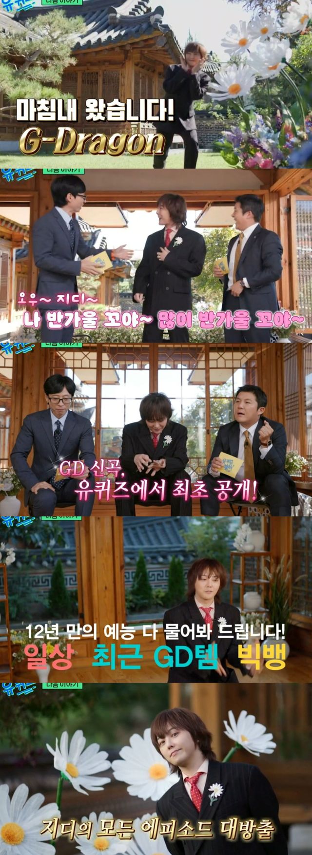 그런가 하면, 유재석은 12년 만에 예능에 출연한 지드래곤의 일상부터 근황, 빅뱅에 관한 모든 것을 질문하겠다는 포부를 드러내 웃음을 더했다.