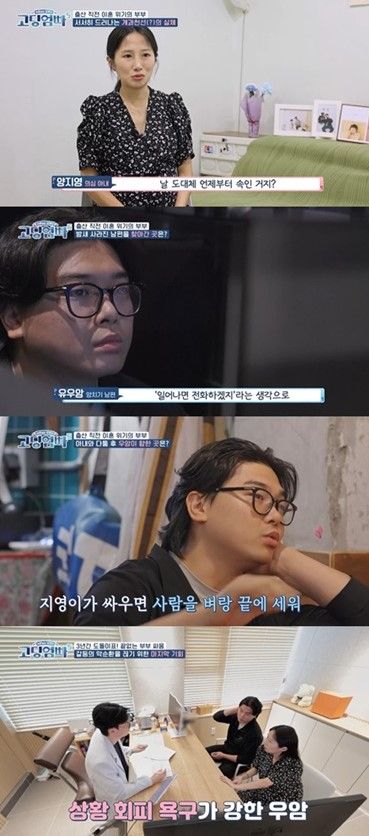 며칠 뒤 양지영은 “마지막 기회라는 생각으로 심리 검사를 받았다”며 악화된 부부 관계 개선을 위해 남편과 함께 병원을 찾았다. 하지만 이곳에서도 유우암은 자신의 잘못을 인정하지 않고, 변명만 늘어놨다.