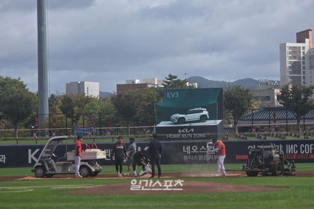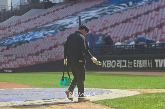 그 사이에도 구장 직원들은 그라운드 상태를 개선하기 위해 부단히 노력했다. 방수포 밑 잔디가 죽지 않기 위해 계속해서 바람을 불어 넣었고, 군데군데 물이 고인 곳에 흙을 뿌리면서 그라운드 정상화에 나섰다.