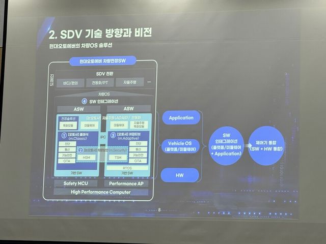 차량의 HW 부품이 수 만개로 구성된 것처럼 이와 연동하는 SW 역시 수많은 다층 구조로 이뤄진다. 이러한 여러 SW를 통합 제어하려면 ‘차량용 SW 플랫폼’이 필수적이다. 차량 SW 플랫폼은 컴퓨터의 운영체제(OS)와 비슷한 역할을 한다. 차량 내부 통신 시스템과 기능이 상호 충돌하지 않고 유기적으로 작동할 수 있도록 제어한다. 차량의 각종 기능을 서로 연결하는 일종의 ‘중추신경계’와 같다.