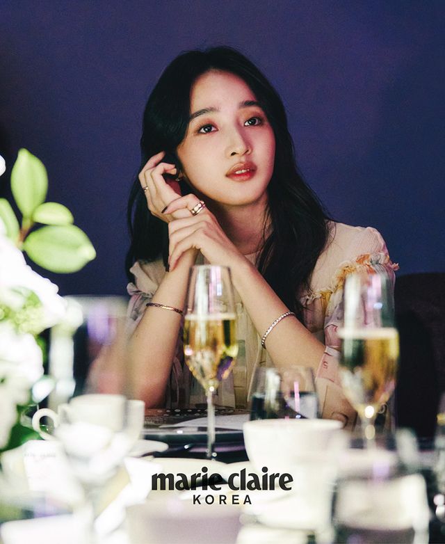 이어링과 브레이슬릿을 착용한 배우 박보영은