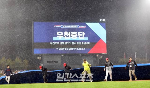 지난 21일 열린 KS 1차전은 6회 우천으로 중단된 뒤 서스펜디드(일시정지) 경기가 선언됐다. 22일 서스펜디드 경기를 속개, KS 1차전을 마무리하고 곧바로 2차전까지 치를 계획이었지만 이마저도 불발됐다. 궂은 날씨와 그라운드 사정으로 일정이 하루 더 밀려 시리즈 최종 7차전 개최 날짜가 오는 29일에서 30일로 바뀌었다. 자칫 쿠바 야구 대표팀과의 평가전이 KS 일정과 겹칠 수 있는데 시리즈 5차전이 열리는 28일 광주 지역엔 비 예보(강수 확률 60%)가 있다.