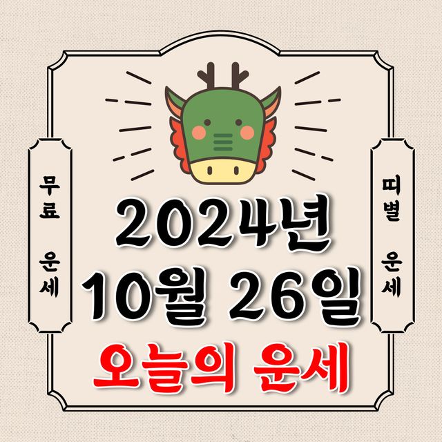 오늘의 운세 2024년 10월 26일 토요일 (음력 9월 24일 / 띠별 운세 / 생년월일 운세)에 대해 알아 보겠습니다.