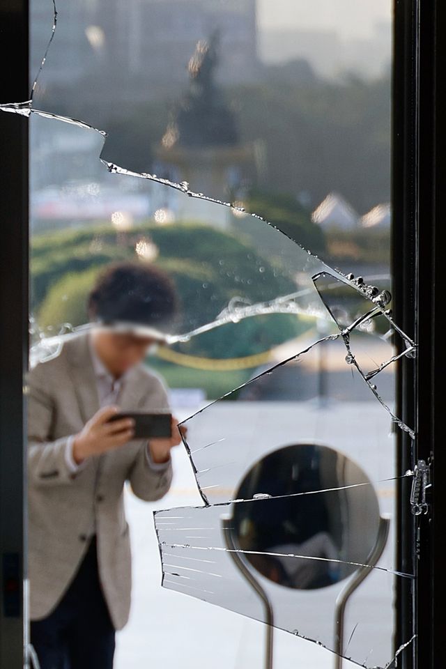 A 씨는 이날 오전 5시 15분쯤 국회의사당 로텐더홀과 이어지는 국회 본관 출입구 유리문을 소화기로 깨트리고 내부로 들어간 혐의를 받고 있다.