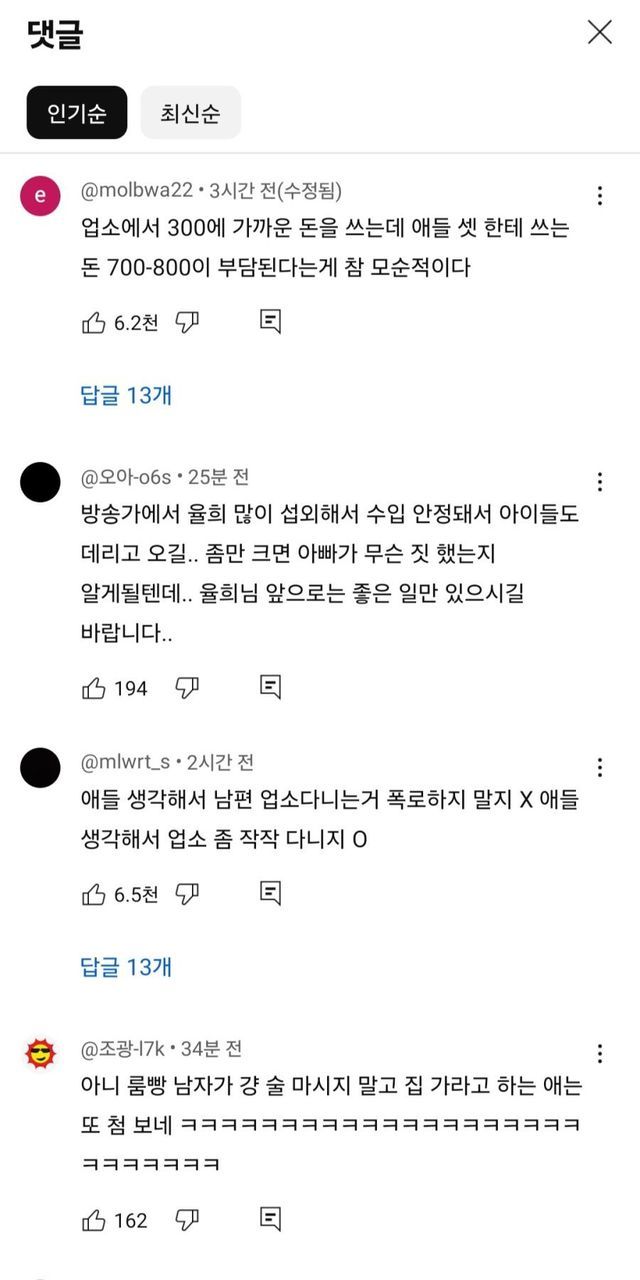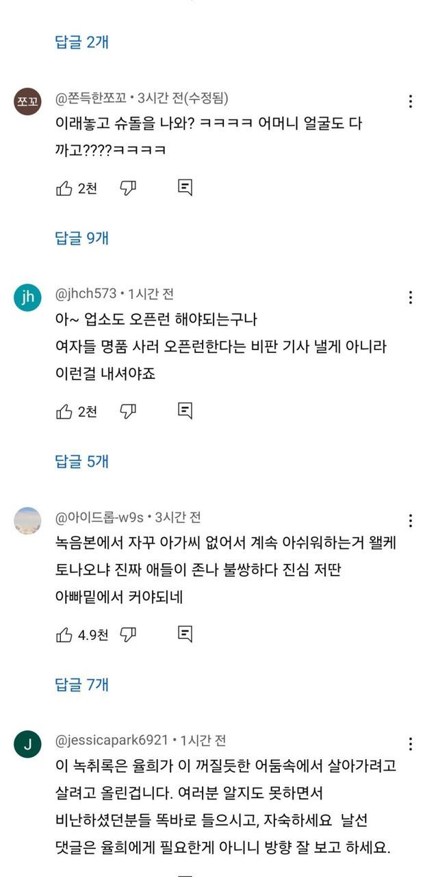 3. 율희 유튜브, 폭로 영상에 달린 댓글 반응들..