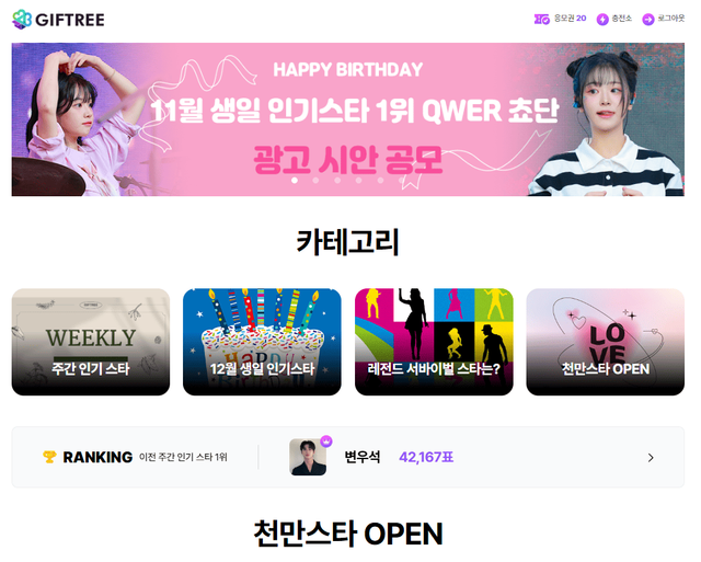 투표 서비스는 포털에 '기프트리'를 검색해 쉽게 접속이 가능하며 네이버, 카카오 아이디를 통해 누구나 간편하게 가입해 참여가 가능하다. 로그인만 해도 1일 최대 2장의 투표권이 부여가 되며 '기사 읽기'를 하면 1일 최대 10장까지 투표권을 지급하며, '광고 시청'을 하면 하루 최대 32장까지 투표권을 지급한다. 획득한 투표권으로는 원하는 만큼 제한 없이 투표권 사용이 가능하다.