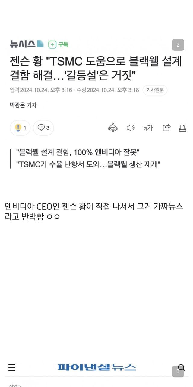 블랙웰 아키텍쳐 설계 미스 루머는 인정하면서 TSMC가 도와준 덕분에 설계수정 가능했다면서 불화설 일축