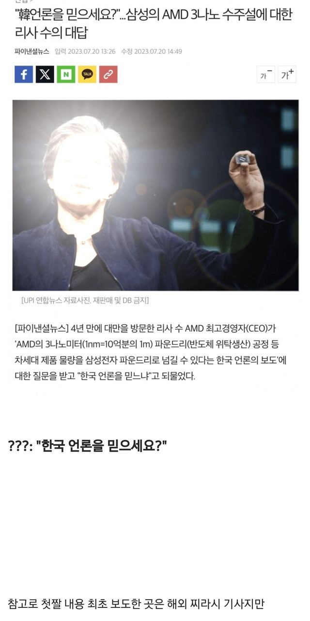 덕분에 그 불화설갖고 또 삼성파운드리 행복회로 돌리던 한국언론들 바로 망신행