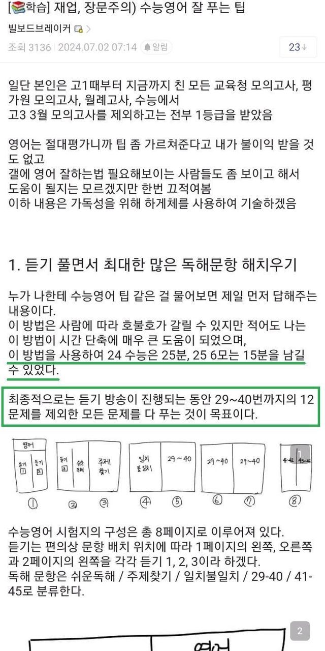 1. 듣기 방송이 진행되는 동안 29~40번까지의 12문제를 제외한 모든 문제를 다 푼다