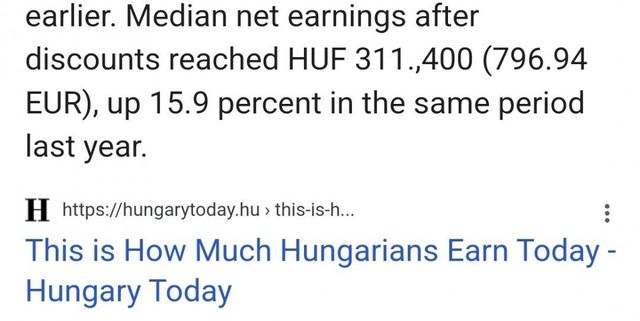 헝가리 세후 중위월급은 797유로 한화로 119만원 임. 그런데 부다페스트 원베드룸 월세는 142만원이니 헝가리 세후 중위월급 119% 수준이란것.
